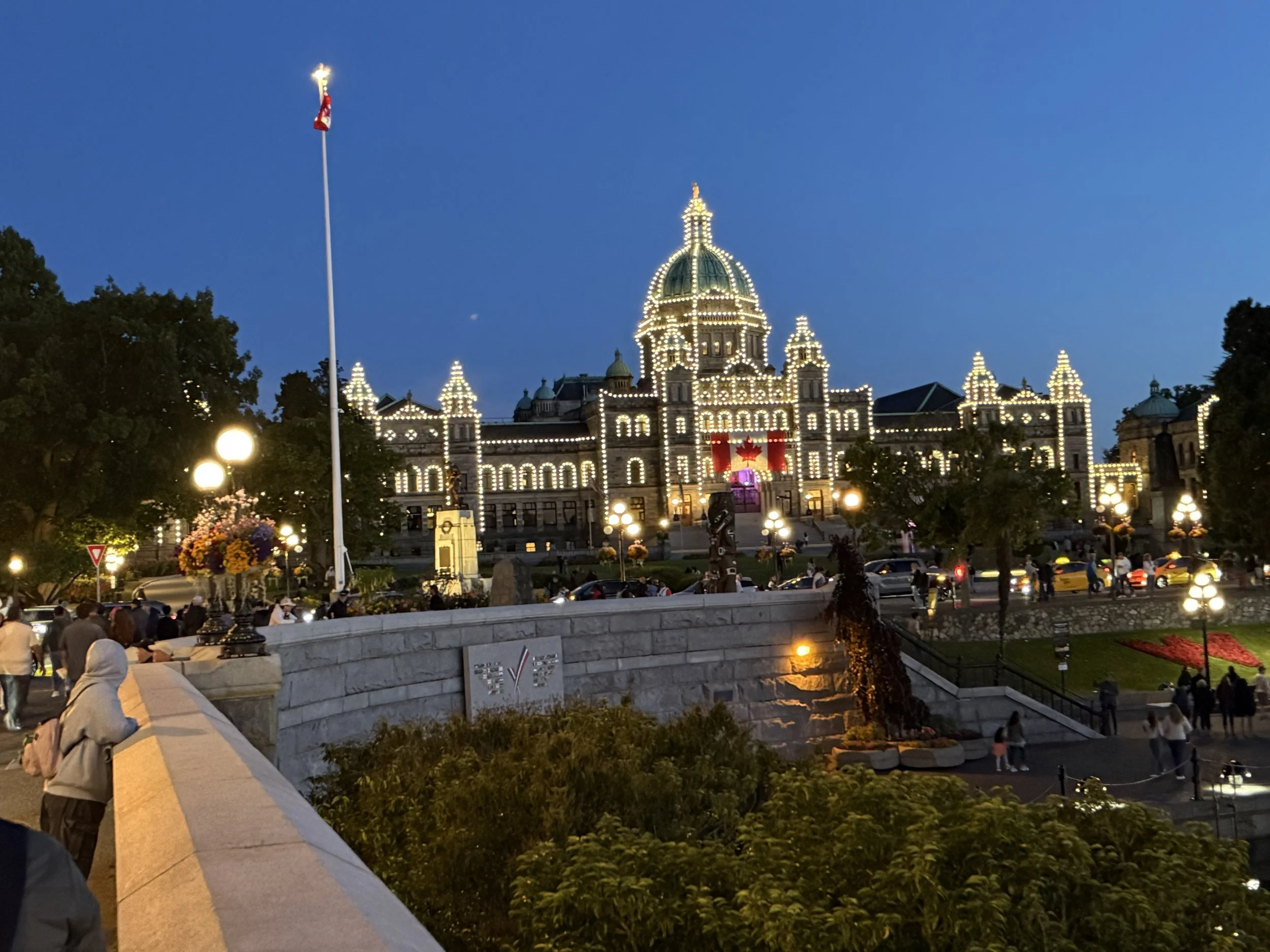 The British Columbia Parliament Building is beautiful lite up at night.