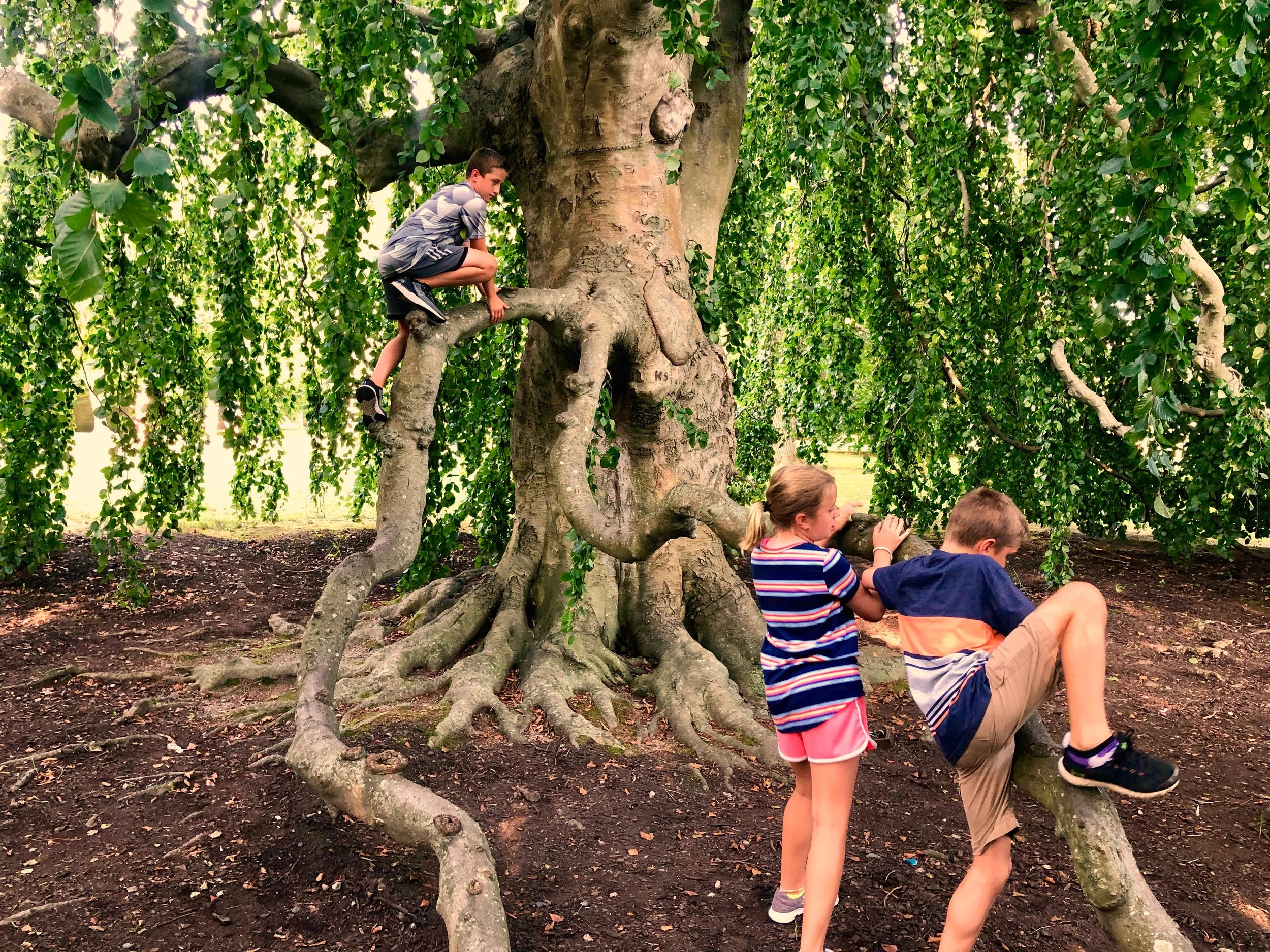 The massive weeping beech trees on the property are incredible. Their branches cascade toward the ground, almost forming natural rooms beneath them. They’re sculptural, dramatic, and the kind of trees you instinctively want to stand under or climb.