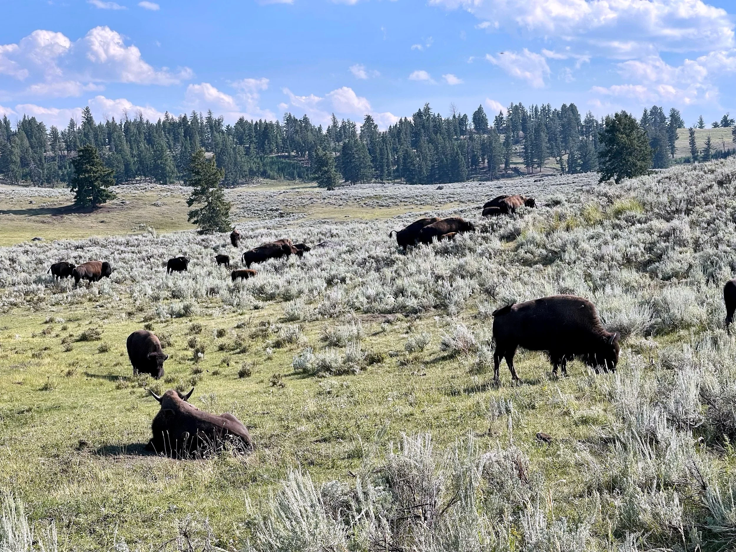Day 1 - Lamar Valley is considered the best spot for wildlife, and it did not disappoint. What surprised us was the grunting noise the Bison made (although only in August mating season)