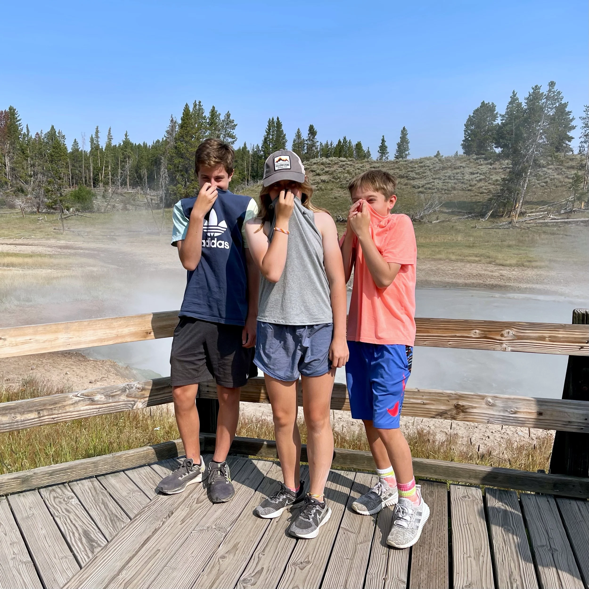What surprised the kids most at Mammoth Hot Springs and Norris Basin was the smell of sulfur. The bubbling noise our planet makes is unbelievable.